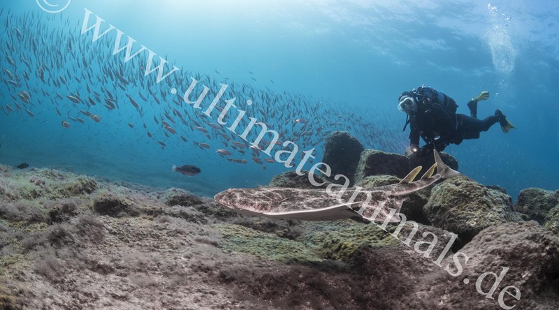 Zu den Tauchplätzen. Wer einen Tauchurlaub auf den Kanaren macht, sollte sich auch dessen bewusst sein. Es gibt hier nun mal keine Korallenriffe. Wir sind im Atlantik. Hier ist von Grund auf erst mal alles felsig. Das ist aber auch kein Beinbruch. Denn hier gibt es genügend Möglichkeiten für viele Arten von Tieren sich zu verstecken. Spinnenkrabben, Muränen, Drachenköpfe und Co. sind bei jedem Tauchgang zu sehen. Wir hatten zudem viele Zackenbarsche, Brassen und Rochen. Mein eigentlicher Grund auf die Kanaren zu reisen waren jedoch Engelshaie. Wahrscheinlich einer der besten Plätze Weltweit diese Art von Haien zu beobachten. Und ich wurde nicht enttäuscht. Es hätten wie immer mehr sein können, aber dafür habe ich schon einen Grund diesen Trip zu wiederholen. Die Unterwasserlandschaft wird, wie schon erwähnt, durch riesige Felsen geprägt. Diese bilden äußerst Interessante Formationen zum drüber, durch und drunter durch tauchen. Es wird nicht langweilig.