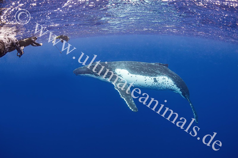 Für mich war diese Reise eines der Highlights in meiner UW-Karriere. Es gehört glaube ich auch zu den schönsten Dingen, nur wenige Meter über einem singenden Wal zu liegen oder wenn sich das wenige Wochen alte Kalb zärtlich an die Walmutter anschmiegt, um kurze Zeit später extrem neugierig nur eine Handlänge entfernt an den doch so seltsamen Schnorchlern vorbei zu schwimmen. Doch zu all dem gehört auch eine ganze Menge Glück. Dieses war uns in der ersten Woche sehr zugetan. Nach drei Tagen hatte ich schon so viele Bilder zusammen, dass ich glaubte, besser könne es nicht mehr werden.